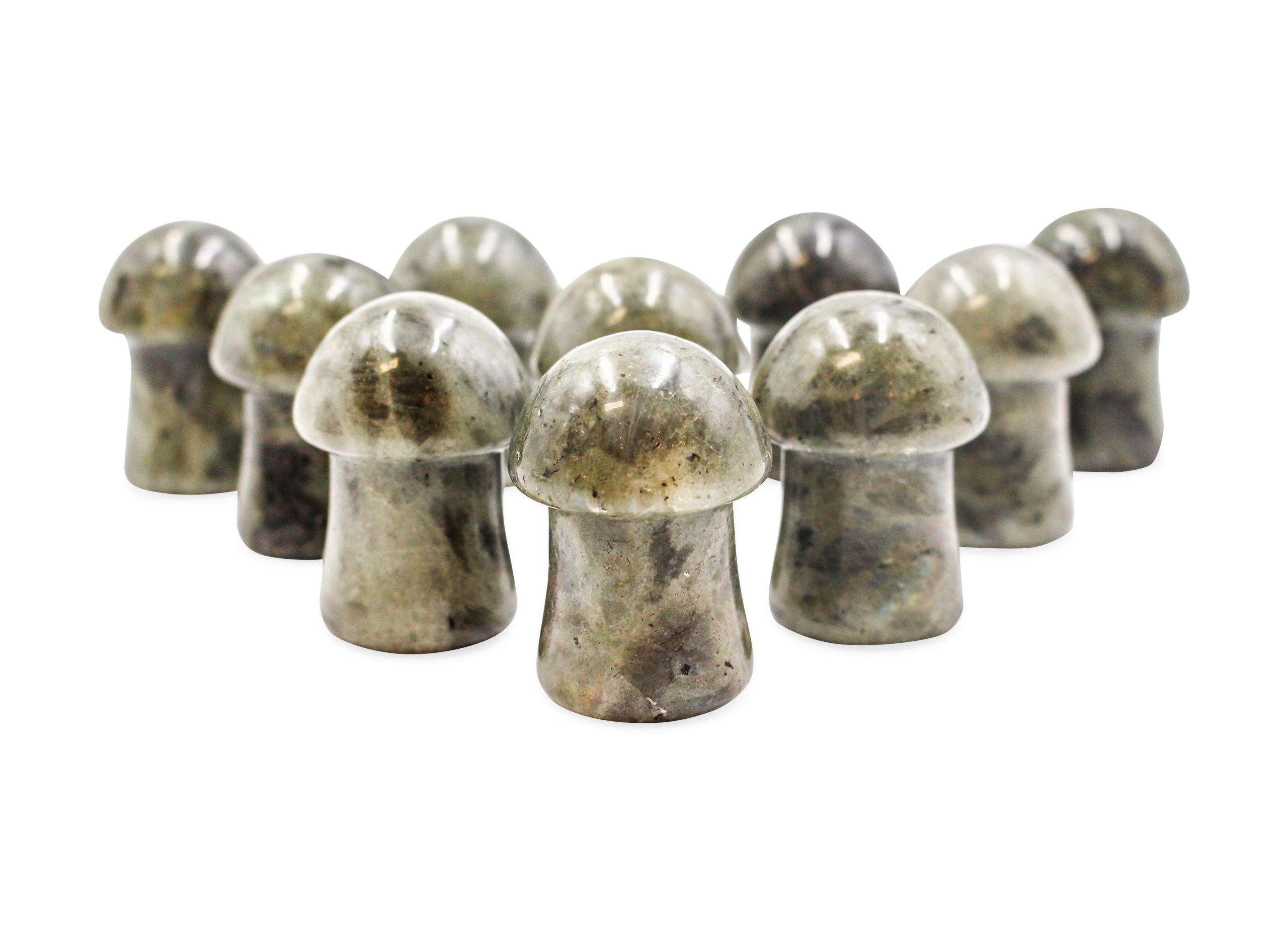 Product Description: One 100% authentic Labradorite mushroom (m).