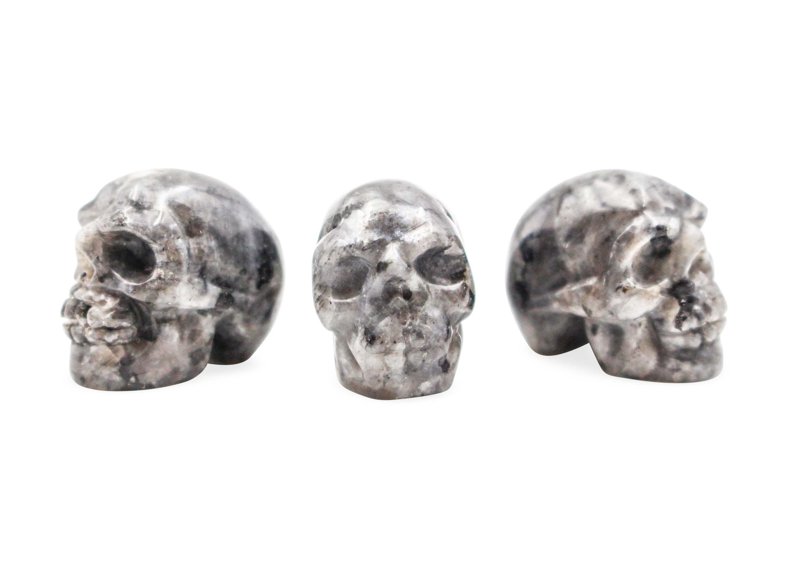 Product Description: One 100% authentic mini Labradorite skull.