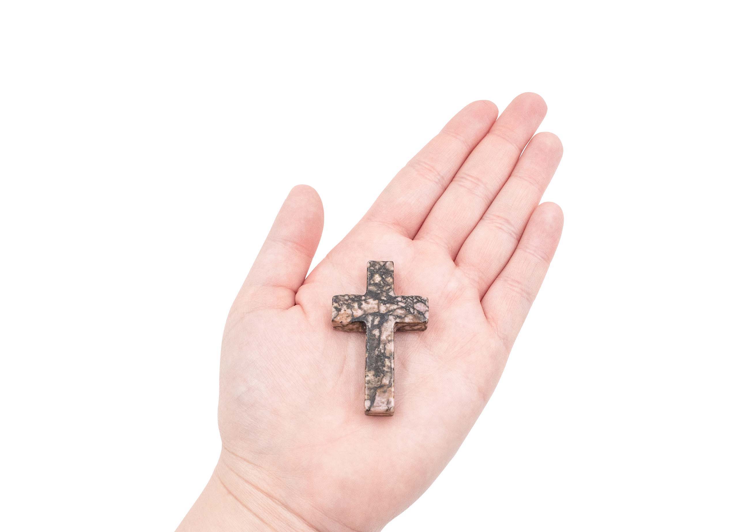 Product Description: One 100% authentic Rhodonite cross.