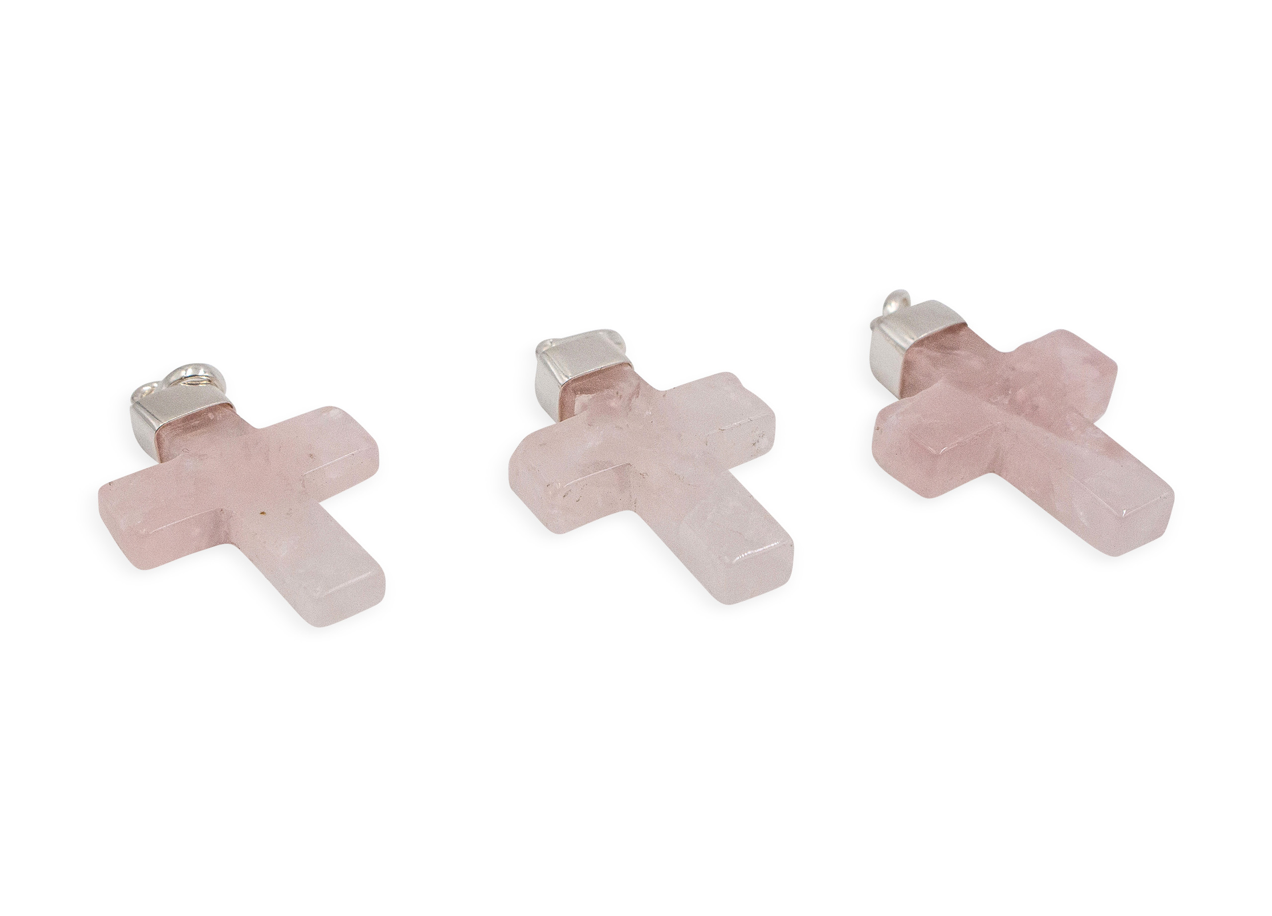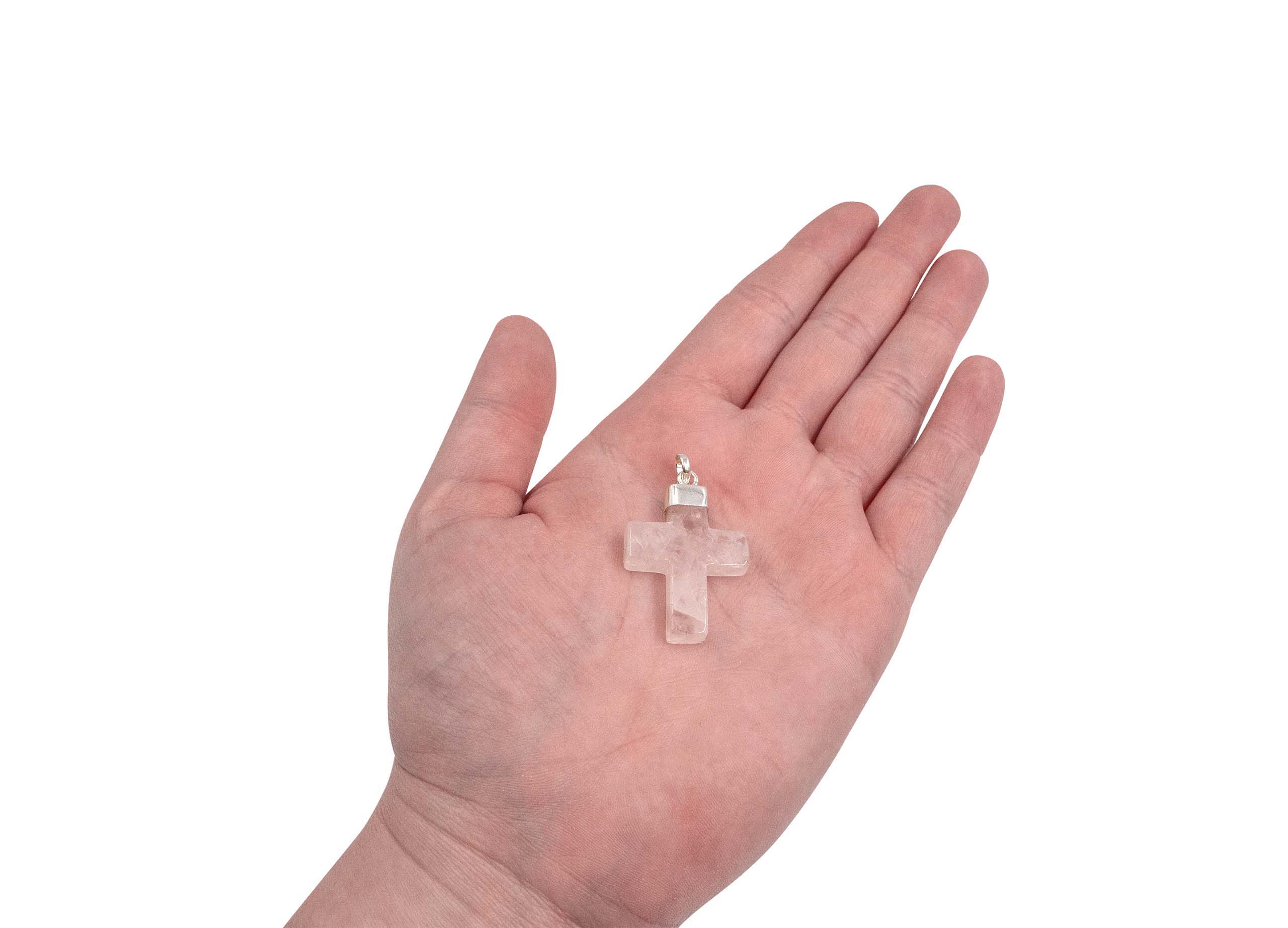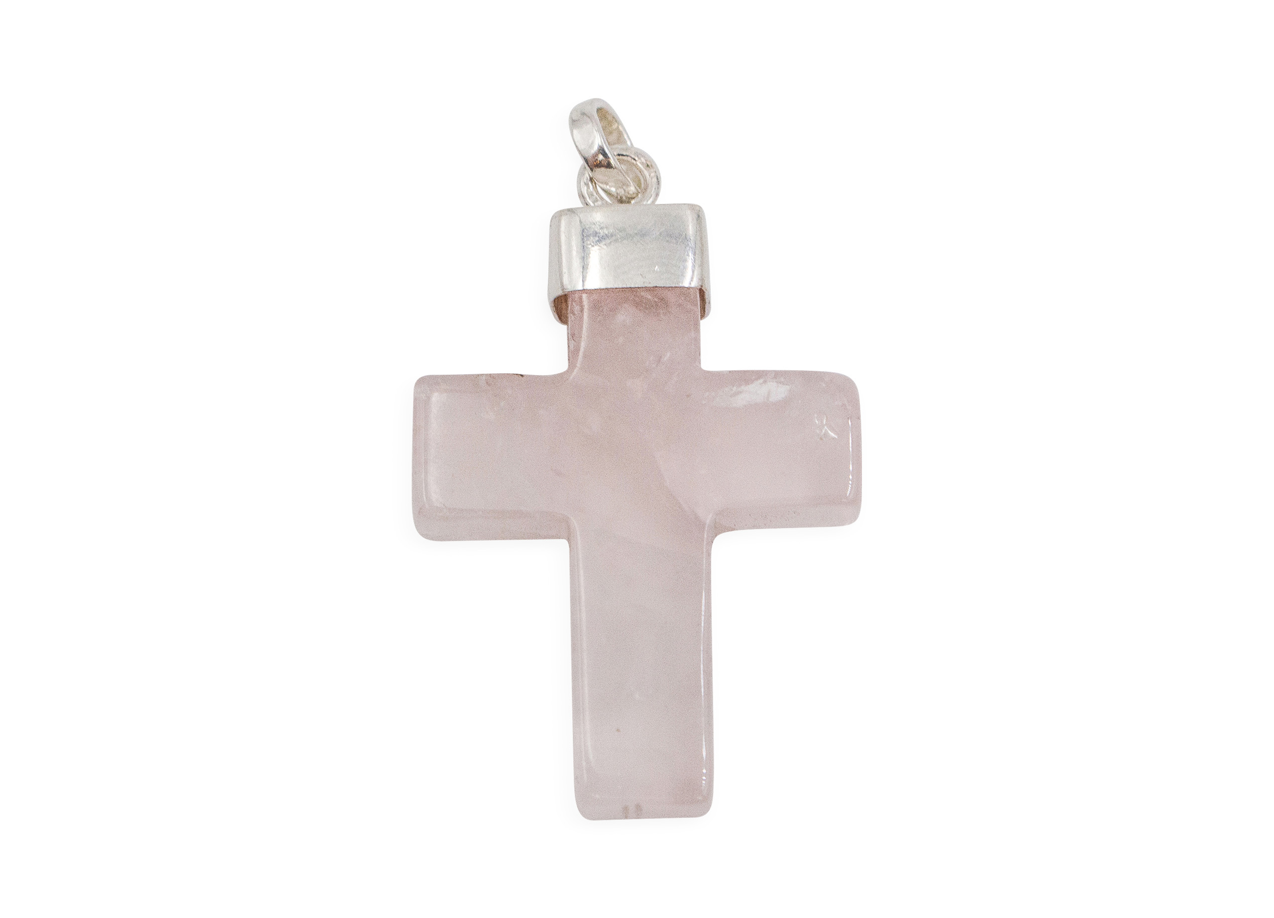 Product Description: One 100% authentic Rose Quartz “Cross” polished pendant in sterling silver (chain not included).