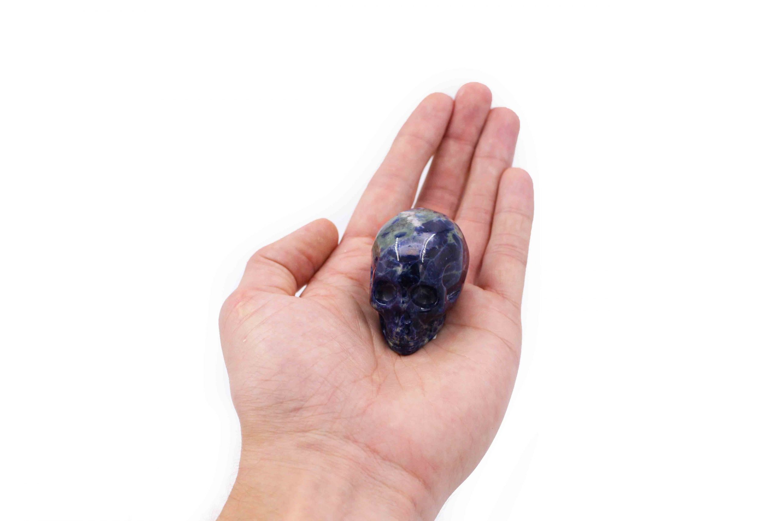 Product Description: One 100% authentic high quality hand carved Sodalite skull.